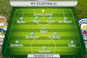 曼晚预测皇马首发:库尔图瓦、阿诺德、赫伊森、吕迪格、门迪、琼阿梅尼、巴尔韦德、卡马文加、卜拉欣·迪亚斯、居莱尔、维尼修斯