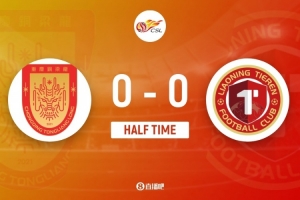 伤停补时1分钟。上半场比赛结束,重庆铜梁龙0-0辽宁铁人。