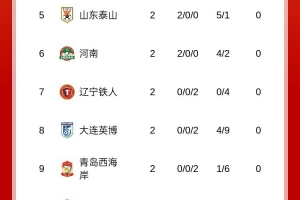 山东泰山刚刚清零,上海申花仍旧是负6分,北京国安和上海海港仍旧是负2分,浙江俱乐部也是负1分,这些球队和成都蓉城的积分差距还是比较大的,但联赛毕竟刚刚进行了两轮,争冠大势还需继续观察。