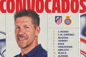 体育资讯2月21日讯 北京时间明天凌晨,马竞将在西甲第25轮比赛中主场对阵西班牙人,马竞公布了此役的球员名单。