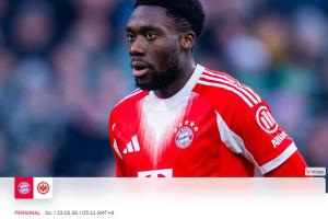 体育资讯02月22日讯 拜仁官方通报了阿方索·戴维斯的伤情,他在本轮拜仁3-2法兰克福的比赛中因伤退场。