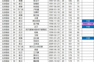 据博主“清蒸树袋熊_GuoAn”报道,本报名表仅适用于超级杯,韩佳奇、何宇鹏、斯帕吉奇、郑图罗、李睿跃未报名,新面孔包括王思泽、马名扬(新加盟),林涵祺、程熙(梯队上调)。