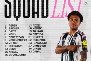 体育资讯3月1日讯 北京时间3月2日03:45,意甲第27轮,尤文客战罗马,尤文公布本场比赛大名单,洛卡特利累计黄牌停赛,弗拉霍维奇缺阵。