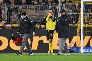 体育资讯03月01日讯 德甲第24轮,多特蒙德主场2-3拜仁输掉国家德比,多特队长埃姆雷·詹因伤被换下。据《图片报》报道埃姆雷·詹很可能遭遇重伤,最糟糕的情况是十字韧带撕裂。比赛结束后两队球员也纷纷拥抱安慰埃姆雷·詹。
